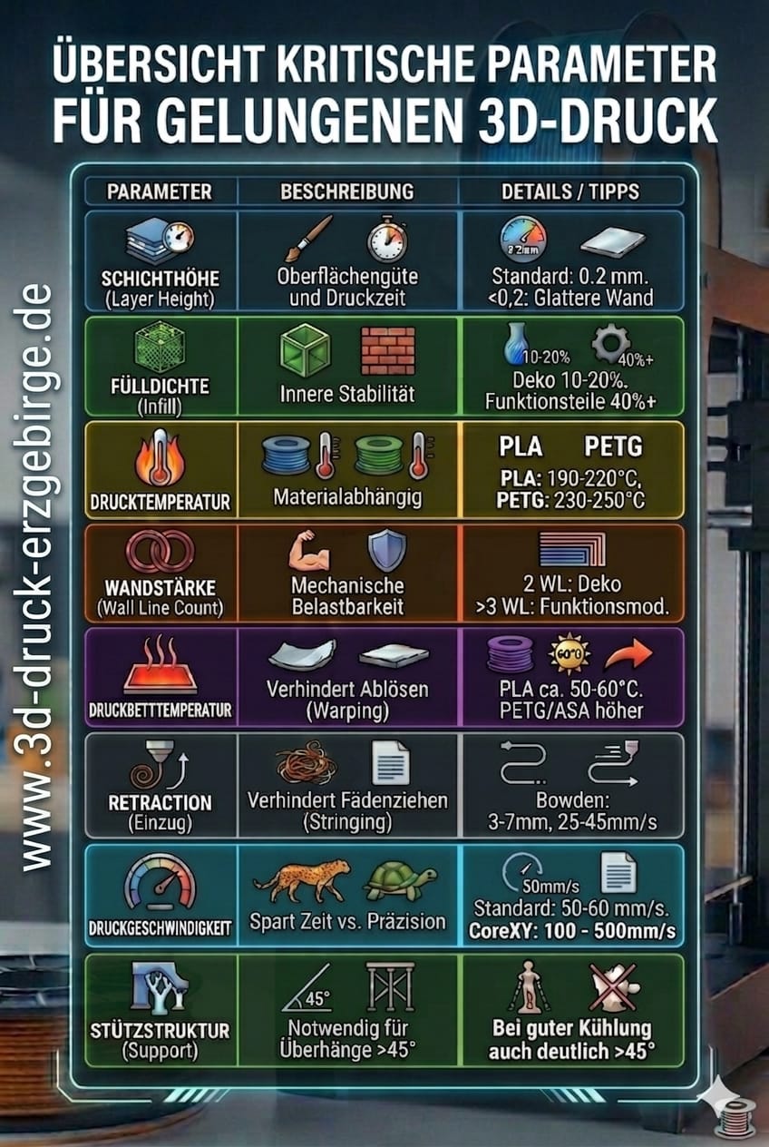 Die Übersicht zeigt die grundlegendsten Slicereinstellungen und erklärt die Zusammenhänge zwischen den verschiedenen Möglichkeiten.